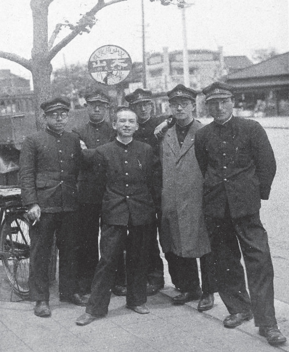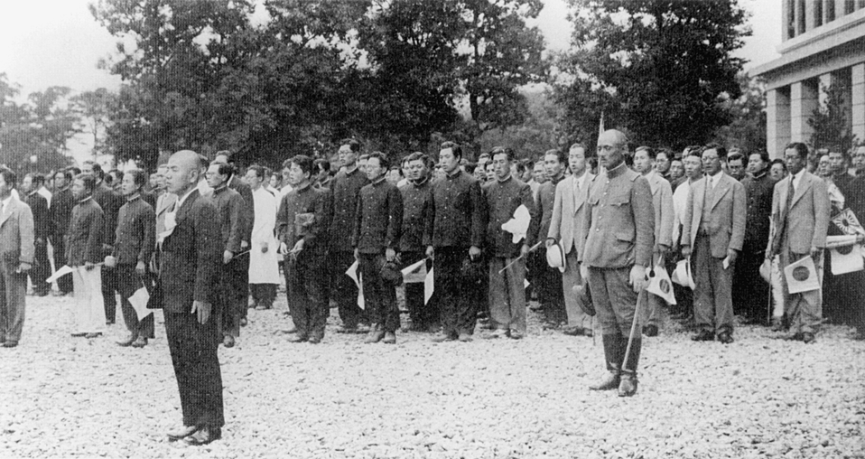 本館前で出征する医学生を見送る式典