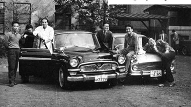 車に寄り添って微笑むポリクリの面々