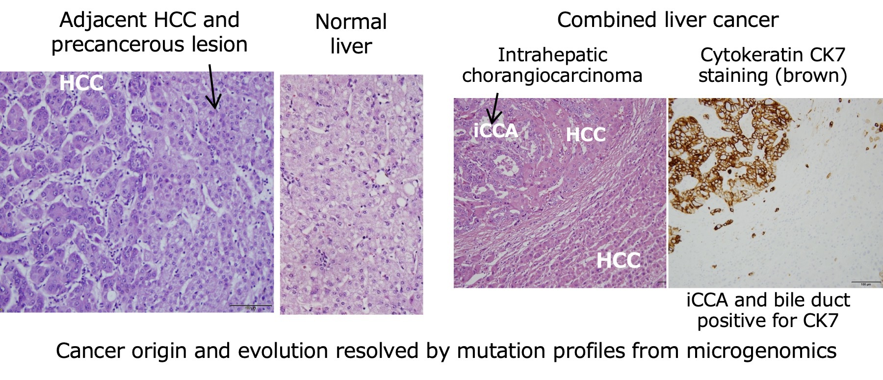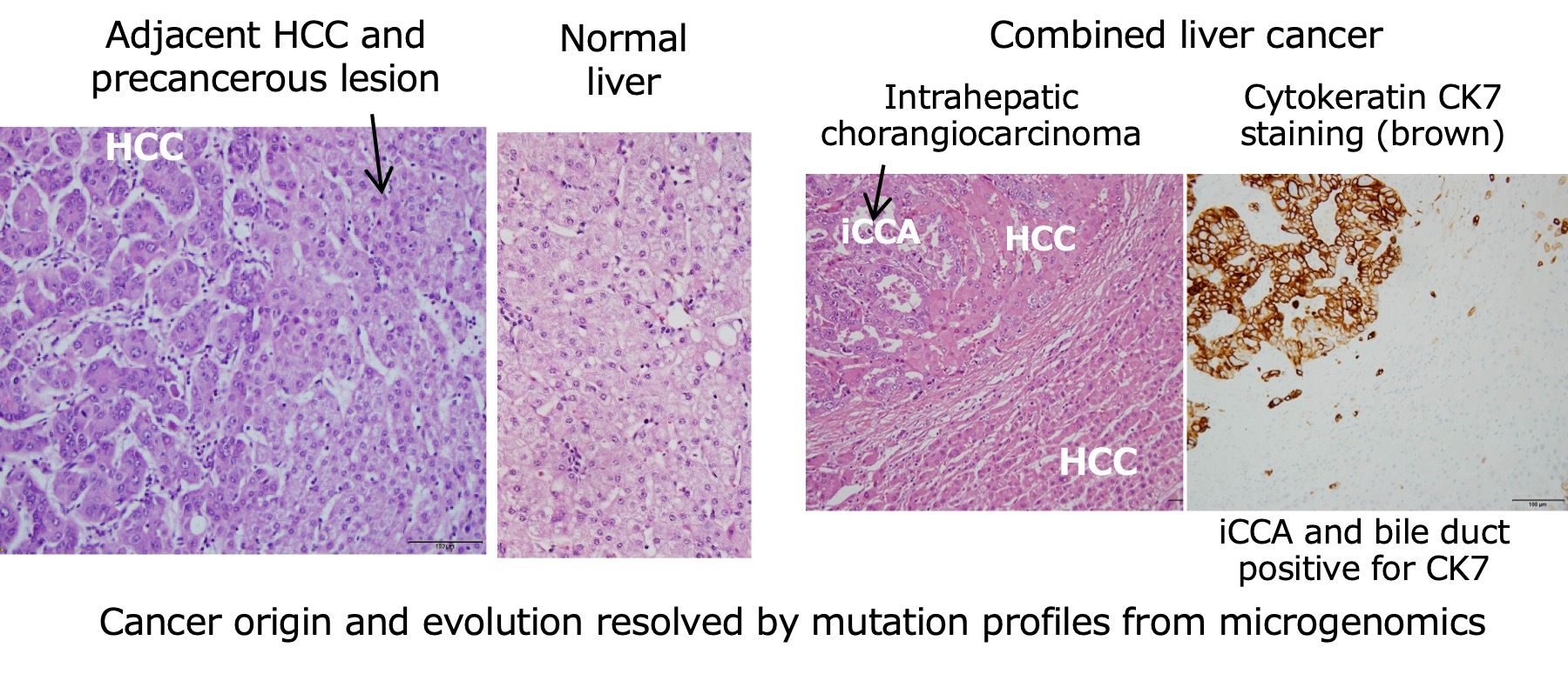 - Cancer origin and evolution have been clarified through somatic mutation profiles by microgenomics of multiple cancer and precancerous lesions: for example, early HCC and precancerous lesion, combined ductal and lobular carcinoma of the breast (Kobayashi et al., Mol Med Rep 2021), tongue cancer and precancerous lesion, and rat HCC, its intrahepatic and lung metastasis.
