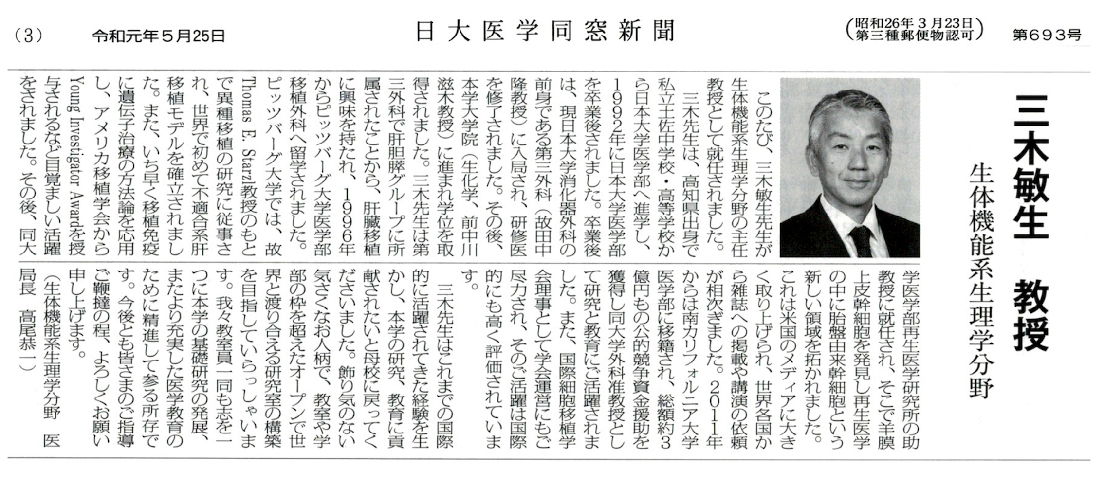 1992年 日本大学医学部卒。1998年 日本大学大学院 医学研究科修了。日本大学医学部第3外科から University of Pittsburgh Thomas E. Starzl Transplantation Instituteへ留学。同大学 Department of Pathology (Strom Lab), The McGowan Institute for Regenerative Medicine、2011年 University of Southern California, Center for Stem Cell and Regenerative Medicine 独立准教授などを経て2019年に現職就任のため帰国。Cell Transplant and Regenerative Medicine Society(CTRMS; 国際細胞移植学会) 理事、日本生理学会、日本再生医療学会、医学教育学会などに所属。Organogenesis誌のExecutive Advisory Editorial Boardメンバー。専門は細胞生理学、発生・幹細胞、細胞移植学。