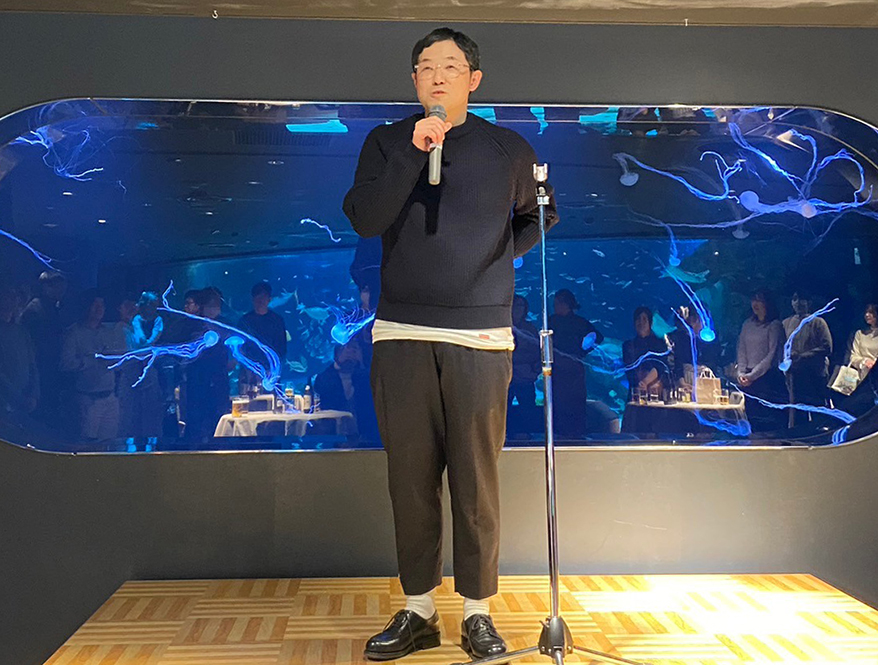 2023年(令和5年)12月11日、池袋サンシャイン水族館にて日本大学医学部精神医学系教室の忘年会が開催されました。今年は4年ぶりの開催で、医局員や来年度入局予定の先生も参加し、大いに盛り上がりました。大きな水槽の中でクラゲやエイが悠々と泳ぎ、海の中をモチーフとした素敵な演出の中、皆でおいしいお酒やお料理に舌鼓を打ち一年の疲れを癒すことが出来ました。また、忙しい臨床業務で普段なかなかお話のできない上級の先生と若手医師、心理士が交流を深めました。水槽の前で大きなサメの写真を熱心に撮る先生や、薄暗い展示室でクラゲの観察を楽しむ先生など、それぞれが自由で楽しい時間を過ごしました。医局員のお子さんも参加し、普段の水族館とは違う雰囲気に興奮し大はしゃぎでした。