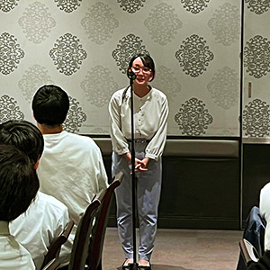 普段は臨床業務に忙しくなかなかゆっくり話す機会がなく、上級医の先生や心理士の先生、若手医師や医学生が交流を深める貴重な機会となりました。新入医局員の先生たちは食事を楽しむ傍ら、病棟医長や外来医長、グループリーダーの話を聞き、改めて精神科の世界に踏み込んだことに強い決意を抱き、七人七色の気概に満ちた挨拶を披露してくれました。