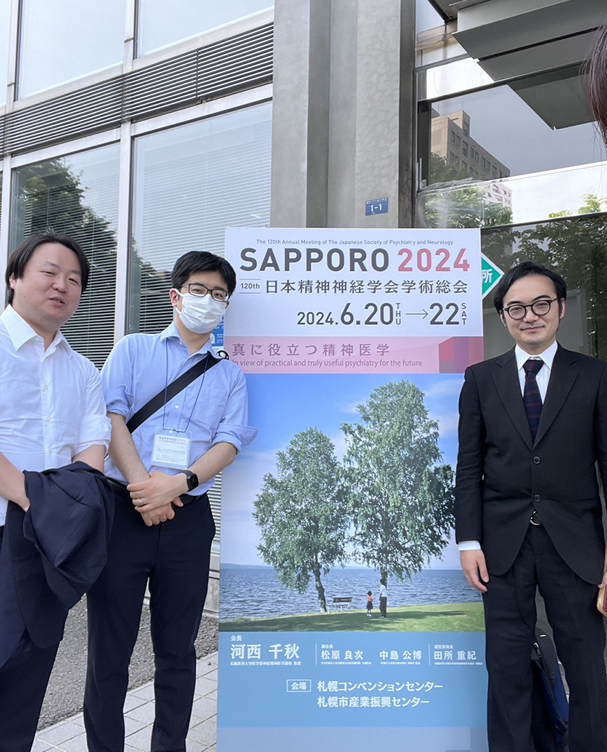 2024年6月20〜22日に札幌コンベンションセンター、札幌市産業振興センターで開催された第120回日本精神神経学会学術総会にて、藤井伸邦先生、医学部6年生の友田英里さんが自身の研究についてポスター発表を行いました。友田さんの発表は初期研修医・学部学生部門で優秀発表賞を受賞されました。北海道は涼しく過ごしやすい気候でしたが、学会での議論は非常に活発で熱気に満ちていました。