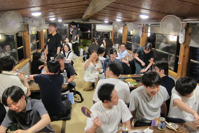 2024年7月27日に納涼会が開催されました。今年は屋形船を貸し切り、教室員のほか、看護師や精神保健福祉士、研修医、学生と、多くの方が参加しました。海辺の夜風に当たりながら、もんじゃ焼きを楽しみ、東京タワーやスカイツリーなどを湾上から眺めるという貴重な体験ができました。一同、日頃の疲れを癒やすとともに、互いに交流を深める楽しいひと時となりました。
