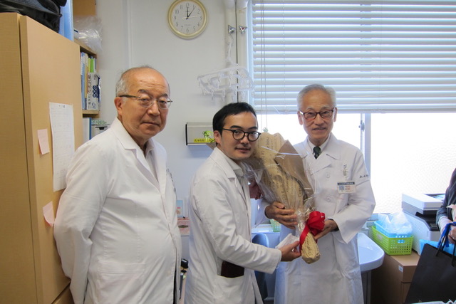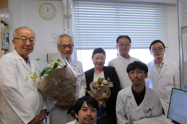 診療終了後、センター長の陳和夫先生をはじめ、センターに関わる多くのスタッフが内山先生を囲み、感謝の意を込めたセレモニーが行われました。内山先生からは、睡眠医学および医療のさらなる発展を願うお言葉が述べられ、スタッフ一同もその思いを受け継ぎ、今後も一層の努力を重ねていくことを決意いたしました。