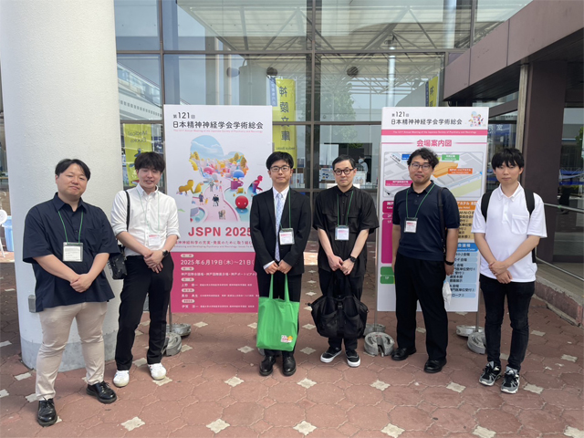 2025年6月19日〜21日に神戸で開催された第121回日本精神神経学会学術総会に多くの医局員が参加しました。金子宜之先生は、鈴木教授が企画されたシンポジウム「近年の睡眠学の進歩と精神医学・医療での展開」において、新たな「睡眠の質」指標の精神科診療での応用可能性について発表しました。また、小嶋悠太先生は「抑うつ状態経験者の受療行動に関するweb調査」という演題で、抑うつ症状を有する人々の受療行動についての実態を発表しました。下山田竜一郎先生は、「歩行運動に伴う同語反復症に対してカルバマゼピンが有効であった脳梗塞の1例」と題して、稀な症状を呈した症例の経過と治療反応について報告しました。それぞれの発表を通じて、精神科医療の幅広い可能性と今後の展開について多くの示唆が得られ、充実した学会となりました。