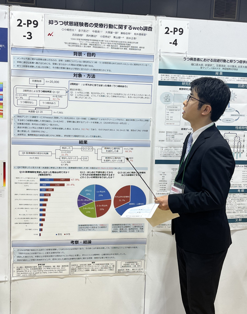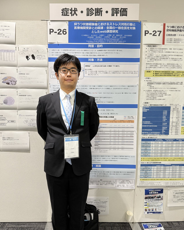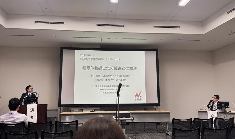 2025年7月11日、12日、浜松町コンベンションホールにて開催された第22回日本うつ病学会総会において、当教室からも複数の教室員が参加し、研究成果を発表しました。小嶋悠太先生は、当教室が参画しているAMED医工連携・人工知能実装研究事業の一環として行われた、抑うつ状態経験者の受療行動とストレス対処行動との関連についての研究の成果を発表しました。個人の行動特性が受療行動に影響する点に注目した本研究は、多くの関心を集めました。また、金子宜之先生は、シンポジウム「気分障害の睡眠・覚醒障害 ―近年の知見と臨床での展開―」に登壇し、当教室で行われた最近の研究成果を紹介しました。今大会では、今後公表予定の新しいうつ病診療ガイドラインの骨子が発表されるなど、非常に学びの多い内容となりました。最新の研究動向や臨床的課題に触れることで、今後の診療・研究活動への新たな視点と刺激を得る機会となりました。