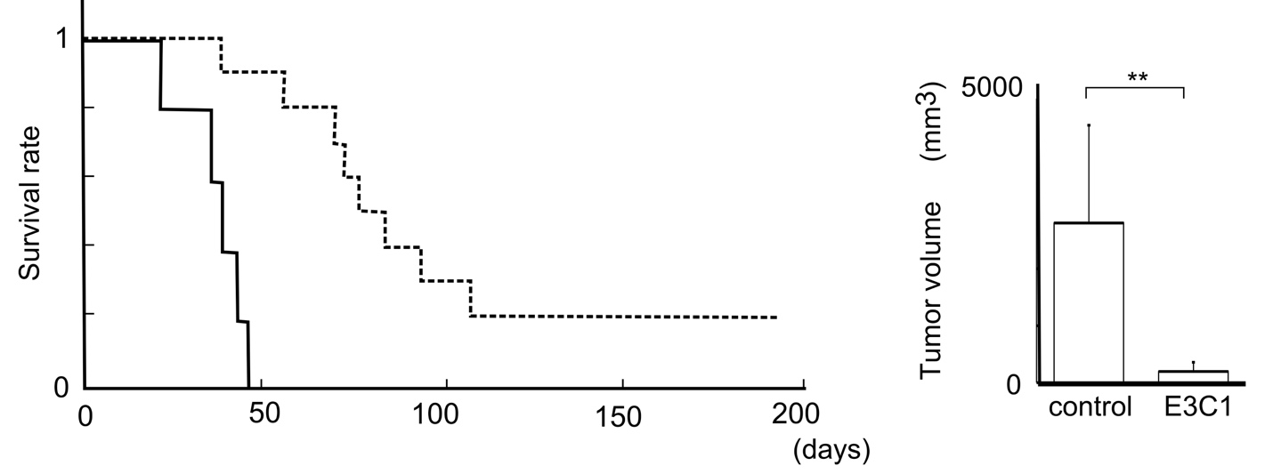 ペプチドとは、100個以下のアミノ酸が重合したものであり、様々な生理活性を持つ細胞間情報伝達物質の一つです。私たちは、血液凝固第IX因子としてよく知られたタンパクが凝固止血以外に、細胞に対する種々の作用を持つことを明らかにしてきました。第IX因子のEGFドメインは、凝固反応の過程で活性化され、アポトーシスを誘導する作用があります。このドメインと相同性が高く、同じ機能をもつEGFドメインは、30強のタンパクに共有されています。このEGFドメインをコードするDNAを用いて担癌モデルマウスの遺伝子治療を行ったところ、腫瘍増殖は抑制され、生命予後も改善しました。一方、凝固反応時に切除されるペプチドには、内皮細胞の透過性を抑制する作用があることがわかりました。敗血症、脳梗塞、脳外傷等の動物モデルでは当該ペプチドの投与により組織の浮腫が減少し、予後が改善したり、梗塞巣が縮小したりしました。これらのペプチドは元来人体に存在するため、化学物質のような副作用は現れません。私たちはこれらのペプチドを治療剤として実用化するべく、研究を続けています。