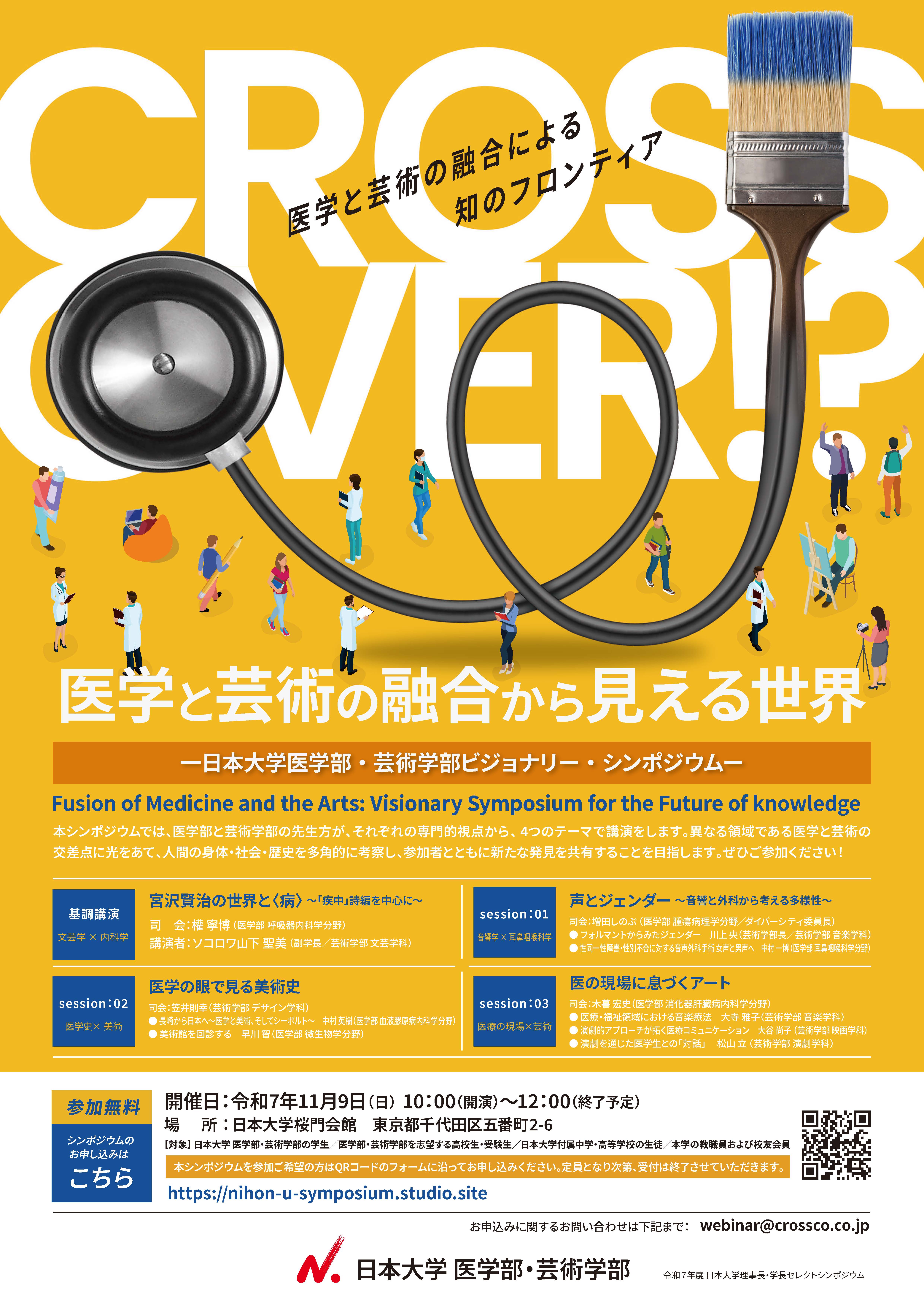 令和7年度理事長・学長セレクトシンポジウム『医学と芸術の融合から見える世界 ー日本大学医学部・芸術学部ビジョナリー・シンポジウムー』を開催します