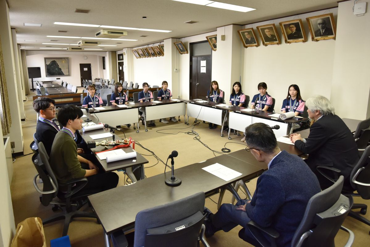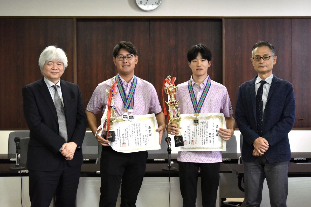 報告会では,木下学部長から「『人とのつながり』こそが大切です。勉強以外の絆も大切にしながら,「授業にはしっかり出席し,留年せずに卒業すること。」文武両道を全うしてください」との激励がありました。また,羽尾学生担当からは「ギリギリのところで折れずに踏ん張る力こそがスポーツの醍醐味です。最後まで気を抜かずに勝ち取ったこの成果を誇りに思います。きっとOB・OGの先輩方も喜んでいることでしょう」と称賛の言葉が贈られました。