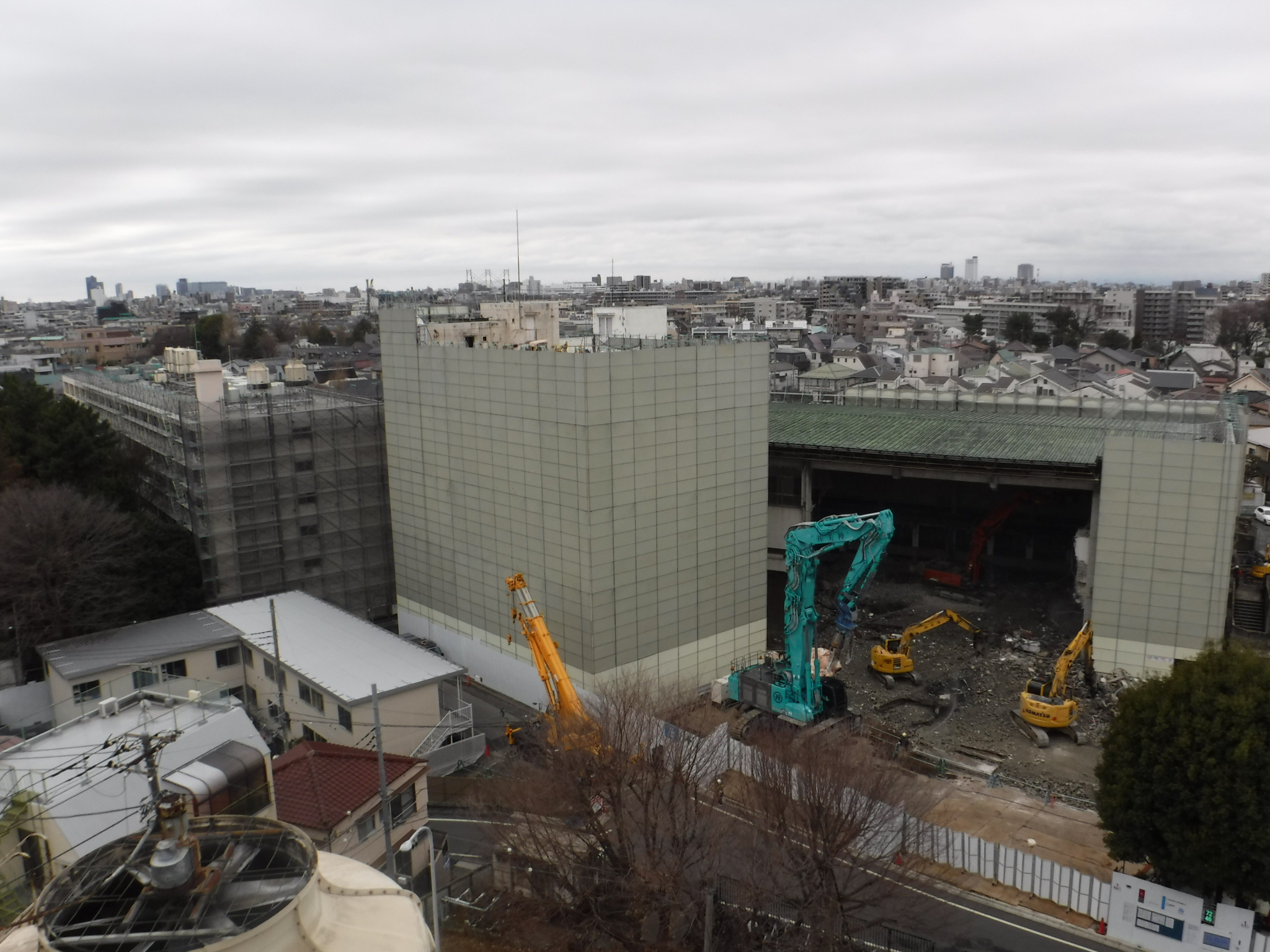 2号敷地(旧看護専門学校の校舎側)では解体工事が着々と進んでいます。体育館は躯体の解体が進み,社会医学・一般教育棟では防音パネルの設置が完了しました。旧看護専門学校1号棟と看護師寮は内装の解体を行っています。