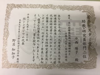 ◆日本大学女性研究者交流シンポジウムに参加しポスター賞を頂きました。11月10日(金)生産工学部