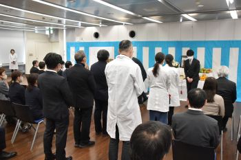 木下医学部長による慰霊の詞に引き続き,稱名院の御導師2名による読経,参列者による焼香,松本研究担当による挨拶が行われ,式は終了しました。